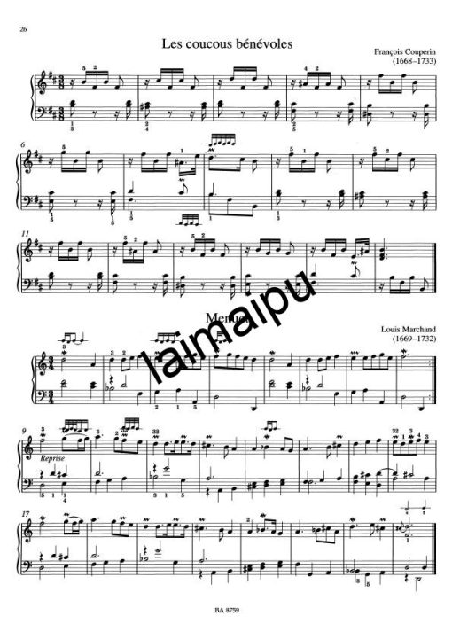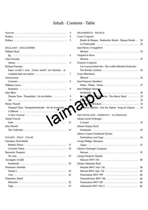 这本书收录难度约在 4-7 级28位作曲家的 44 个巴洛克时期钢琴曲目。