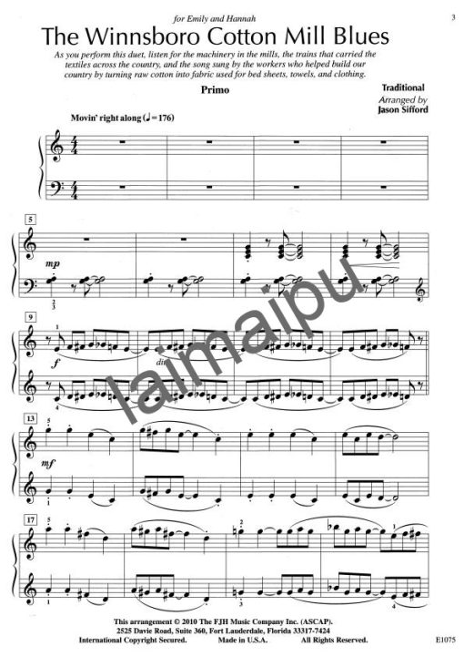 这是一首非常经典的爵士曲目,因乐曲本身动力感实足,改编成四手联弹,以合作的形式会更加有趣,仿佛看到复古的老式机器忙碌运转的样子。中间有些切分节奏,要稍微提醒学生注意,是提升节奏感的优秀教材。