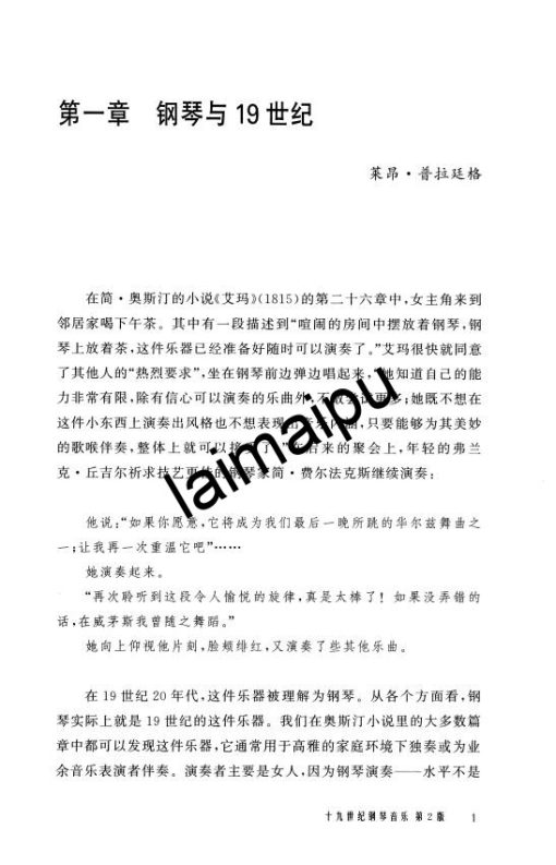 《19世纪钢琴音乐》是一部研究19世纪钢琴音乐的专题性学术论文集,由拉里·托德主编,撰文的十位作者(第二版为十一位)均为任教于美国各高校的著名音乐学家。本文集选择了19世纪的钢琴音乐文化、钢琴表演实践以及当时最为重要的几位钢琴音乐作曲家为研究对象,充分运用音乐分析、社会-文化考察,以及历史叙述等多维度的批评研究方式,展现出近年来西方音乐史学研究更为全面、综合的学术走向。通过这部学术著作,读者可以看到西方的音乐学家如何在传统的音乐研究领域内重新诠释音乐名作的艺术蕴涵与探索其文化价值的深意。《19世纪钢琴音乐》第一版自1990年由希尔默出版社(Schirmer Books)出版之后,立刻就成为了19世纪钢琴音乐专题研究的权威性著作。时隔14年之后,英国罗德里奇出版社(Routledge)在2004年对此书进行了再版(在第一版基础上进行了细微的修订,并增加了一个研究女性音乐家克拉拉·舒曼和芬妮·门德尔松·亨泽尔的钢琴音乐的章节),足见其学术价值经受住了时间的考验,并已在这一研究领域内呈现出“经典”意味。