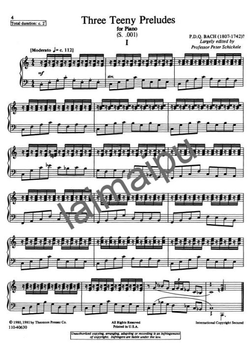 施克乐: P.D.Q 巴赫: 3 首小小前奏曲 (Schickele: P.D.Q. Bach: Three Teeny Preludes)