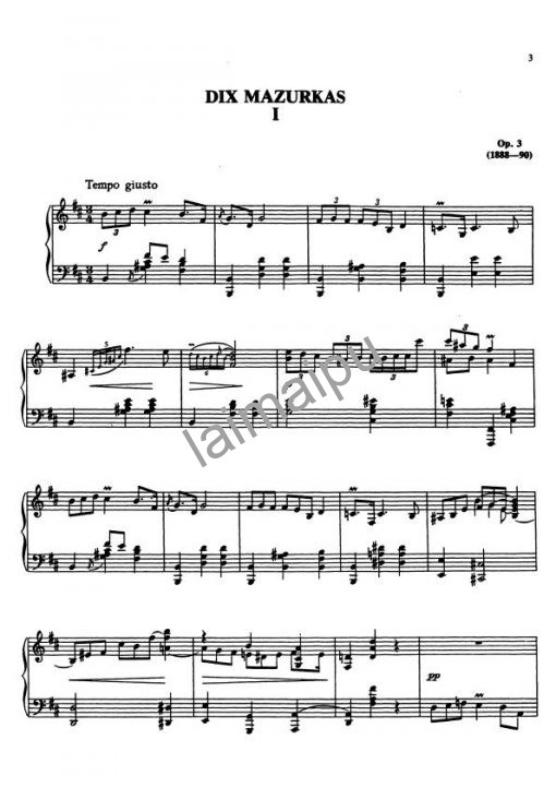 钢琴、独奏、6-9级、收录马祖卡Opus 3, Opus 25, and Opus 40与两首1889年的马祖卡。
