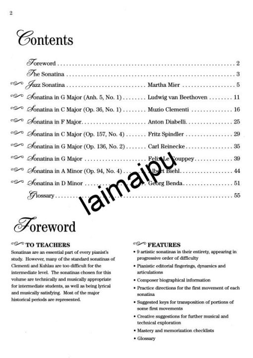 3-4级、钢琴独奏、9首小奏鸣曲皆附有学习指示、作曲家简介等页面,好听的乐曲兼具教学辅助、十分推荐!