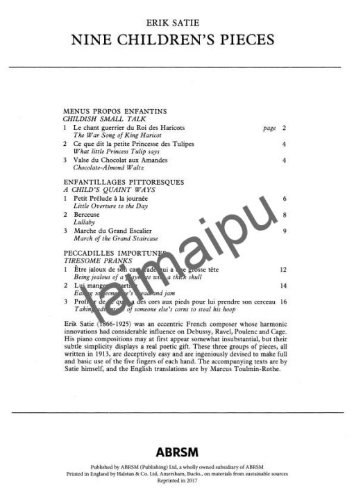 🔊 萨替: 九首儿童小品 (Erik Satie: Nine Children’s Pieces)