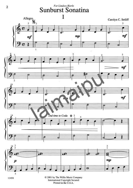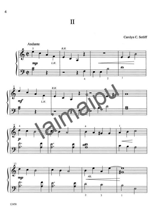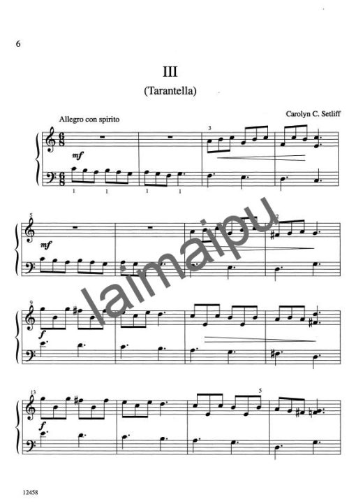 2级、3级、单曲 (一本谱只有一个作品)、钢琴 (一台琴)、1人、独奏、难分风格教学小品、Setliff, Carolyn C. | 塞特利夫、Willis Music、外文乐谱