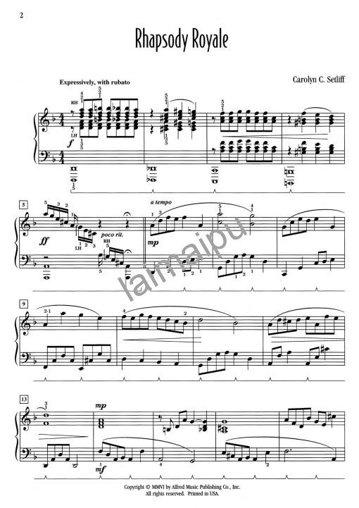 这首独奏曲拥有一切–宏大的引子、舒展的抒情旋律和复杂的结尾,对进阶的学生来说非常有吸引力。D小调带来了某种忧郁的气氛,并增加了对比部分的戏剧性。要实现这首狂想曲的真正风格,必须要有表现力的演奏和揉弦的感觉。它的吸引力肯定会使它在比赛和演奏会上大受欢迎。
