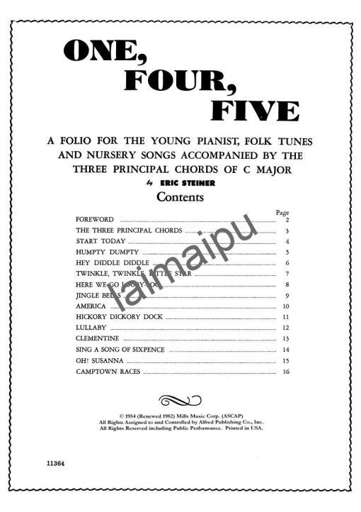 斯坦纳: 一级、四级、五级,为小钢琴家所写的短曲 (Eric Steiner: One, Four, Five: A Folio for Young or Elementary Piano)