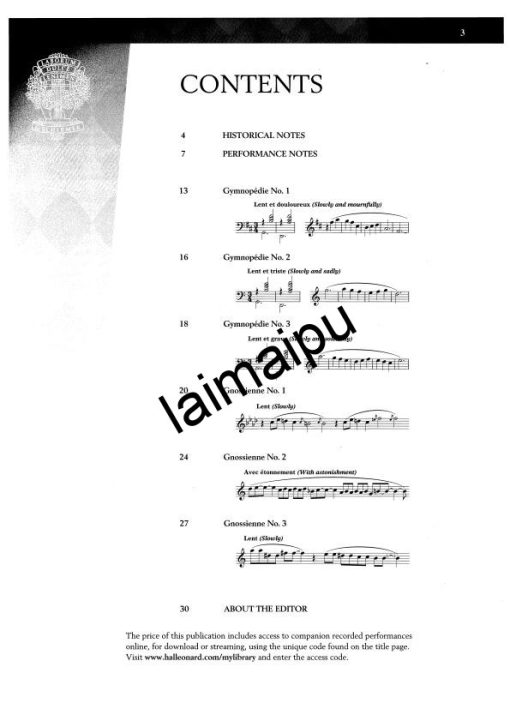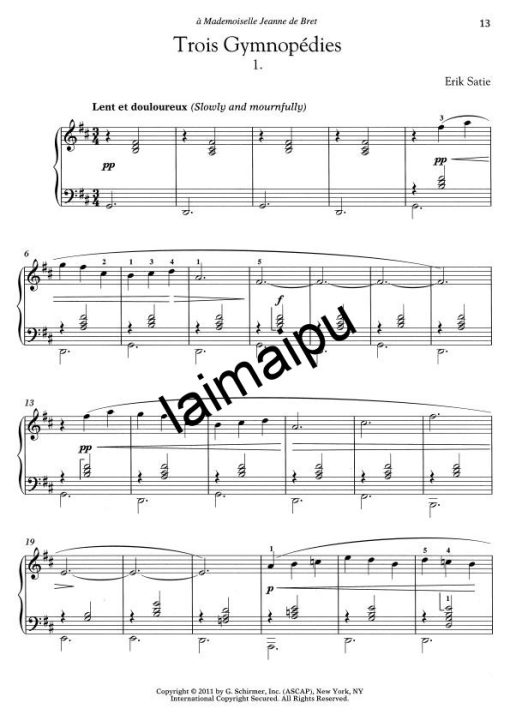 萨替: 三首吉诺佩蒂 (祼舞) 与三首玄秘曲 (Schirmer 版) (Satie: 3 Gymnopedies and 3 Gnossiennes)