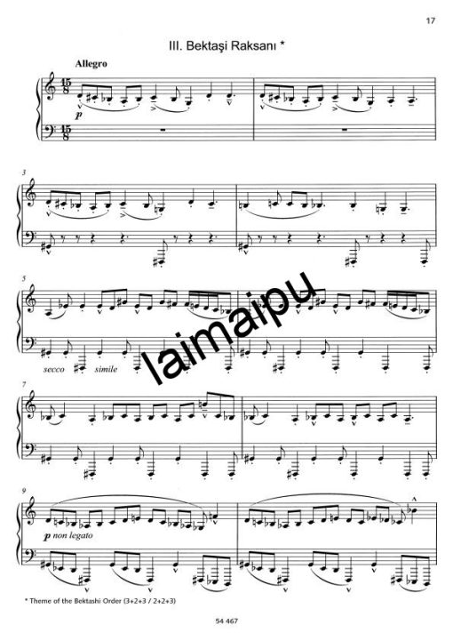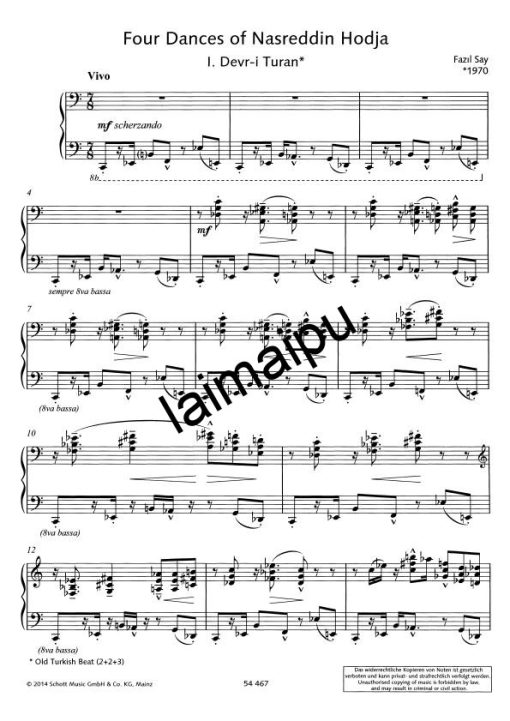 土耳其钢琴家赛依编号1的作品,吸收本国与邻国音乐元素,加上各种切分与律动组成的作品,也预示了他未来的创作特色。