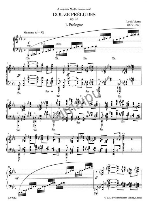 他的 “Douze Preludes “作品。36和 “三首夜曲 “作品。维尔纳在1914年至1916年期间创作了 “两首前奏曲 “和 “三首夜曲”,他继承了浪漫主义钢琴的传统,同时赋予这些历史典范以优雅和表现力之间的特殊声音,这也是当时法国音乐的特点。