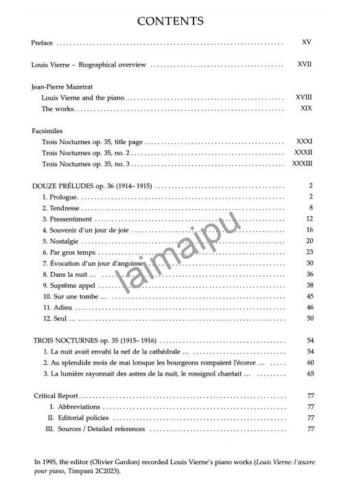 本卷的编辑是杰出的钢琴家奥利维尔-加东。作为一名演奏家和学者,他对路易-维尔纳的钢琴音乐进行了二十多年的研究,对其有着无与伦比的了解。这一点可以在奥利维尔-加东1995年的完整CD录音中听到,令人信服。