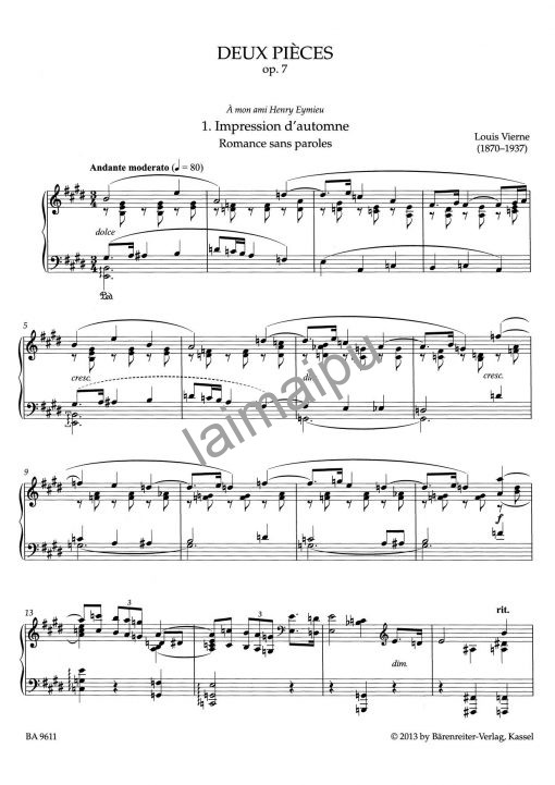 路易斯-维尔纳是一位著名的管风琴家,但在他的一生中,他也是一位敏锐的钢琴家和钢琴音乐的作曲家。他对乐器的音质细腻和丰富性有着特殊的感受。本卷中的作品包括一些首次出版的作品,是维尔纳早年的作品,具有浪漫主义风格作品的传统。它们的和声语言和对声音的优雅感受,都显示了维耶纳的个人音乐语言。这些作品主要是中等技术难度,因此适合于更多的钢琴家。