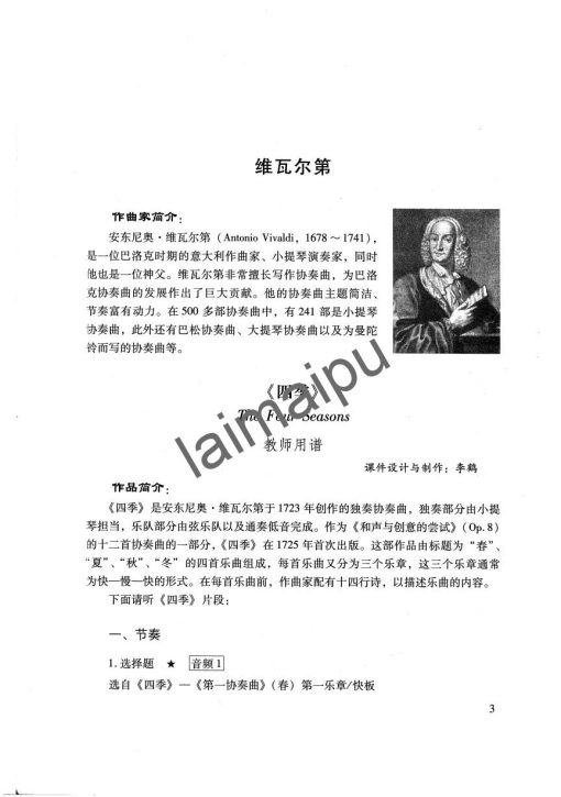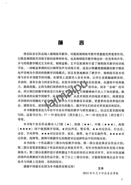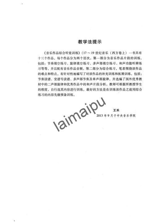 王禾: 音乐作品綜合听觉训练 17~19世纪(西方音乐卷上)(目前无下册)