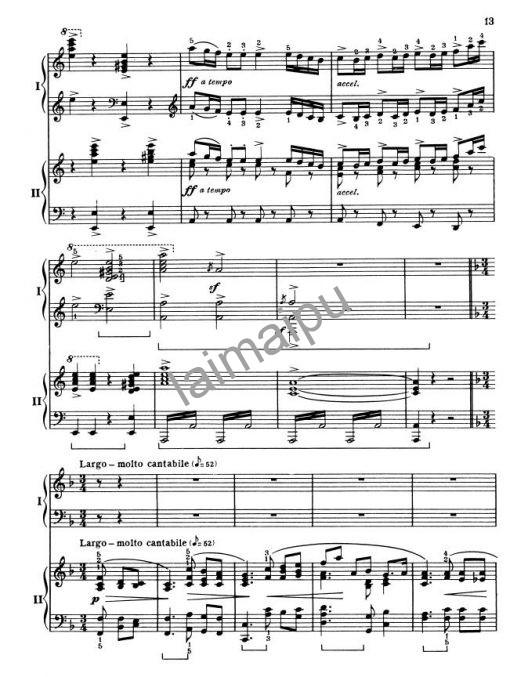 双手 4~5 音和弦,与八度内的音阶。一、三乐章在比赛或音乐会都有好的演出效果