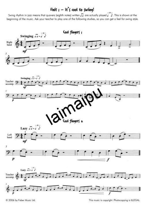 每个单元都由简短的练习和学习组成,并以Pam Wedgwood独特的风格形成一首有趣的爵士乐曲。所以,从经典中抽身出来,投入到爵士乐中去吧!