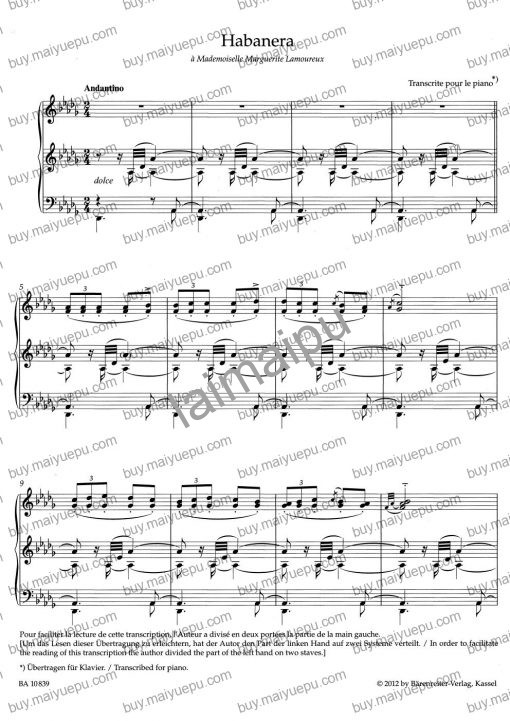 夏布里埃: 哈巴奈拉 (改编成钢琴独奏版) (Chabrier: Habanera) 有 1 个评价