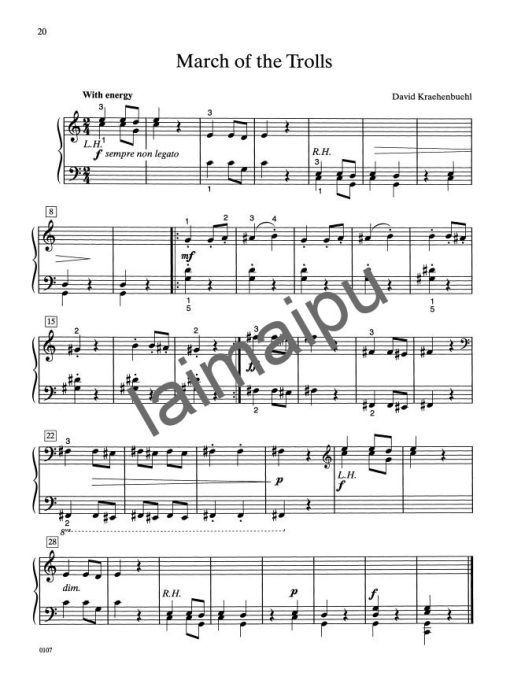 现代乐派钢琴作品集包括巴托克 (Bartok)、格雷查尼诺夫 (Gretchaninov)、卡巴列夫斯基 (Kabalevsky)、普罗科菲耶夫 (Prokofiev)、斯科特 (Scott)、肖斯塔科维奇 (Shostakovich) 和斯特拉文斯基 (Stravinsky) 为儿童创作的音乐精选。此外,书中还收录了罗斯-李-芬尼 (Ross Lee Finney)、大卫-克劳恩布尔 (David Kraehenbuehl)、道格拉斯-摩尔 (Douglas Moore)、埃利-齐格梅斯特 (Elie Siegmeister)、亚历山大-汤斯曼 (Alexandre Tansman) 和亚历山大-齐尔品 (Alexander Tcherepnin)专门为本系列创作的作品。简短的传记和肖像有助于为学生生动地展现出作曲家的特色。这些音乐都不是很前卫,很好欣赏和理解。