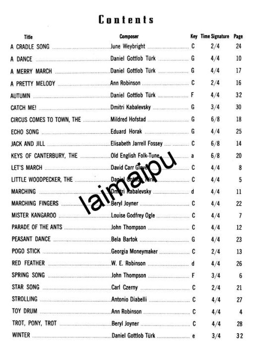 由著名作曲家吉诺克整理编辑的初学早期钢琴独奏曲集。