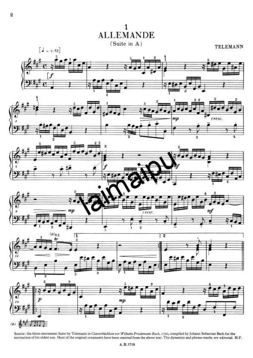 - “Suite in A, from ‘Clavierbuchlein’ for W. F. Bach: 1st movement, Allemande” Performed by Georg Philipp Telemann