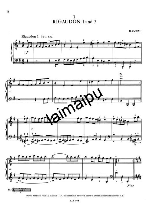 - “Rigaudon 1 and 2 in E minor, from ‘Pieces de Clavecin’ 1724” Performed by Jean-Philippe Rameau
