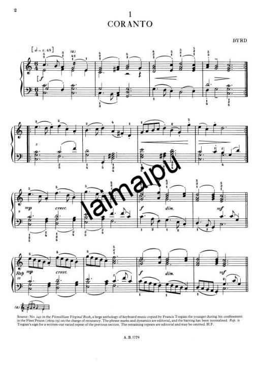 - “Coranto, from ‘Fitzwilliam Virginal Book'” Performed by Byrd
