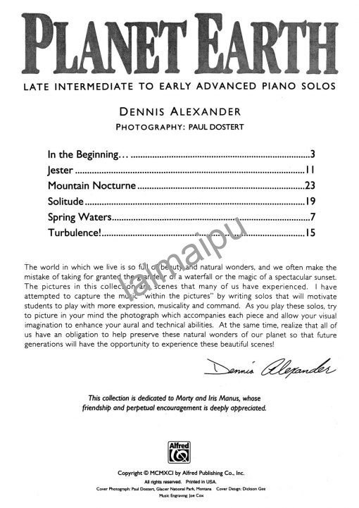 这套新颖的中级晚期至高级早期钢琴独奏曲,捕捉到了我们周围壮丽世界的精神和壮丽,鼓励学生帮助保护我们美丽星球的自然奇观。探讨了许多音乐情绪,鼓励演奏者用更多的表现力和音乐性来演奏。每首曲子都配有一张戏剧性的照片。