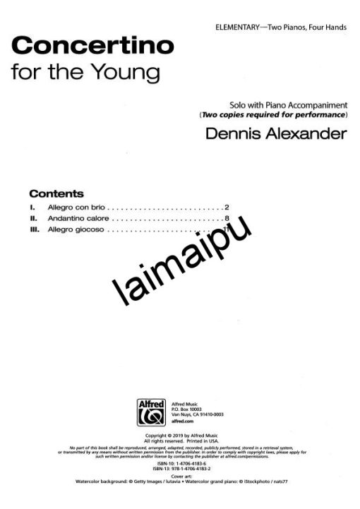 青年小协奏曲是一部由三个乐章组成的作品,帮助初学者发展平衡、技巧和艺术性方面的技能。从充满活力的第一乐章开始,接着抒情的第二乐章,最后以活泼的第三乐章结束,这首作品提供了独特的技术和听觉挑战,与不同的演奏法和句法有关。再加上第二钢琴伴奏,由老师、年长的学生或亲属演奏,学生将体验到演奏协奏曲的快感和乐趣。