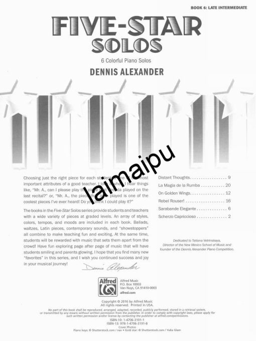 🔊 亚历山大: 五星级独奏 (共 6 册) (Alexander: Five-Star Solos) 有 1 个评价