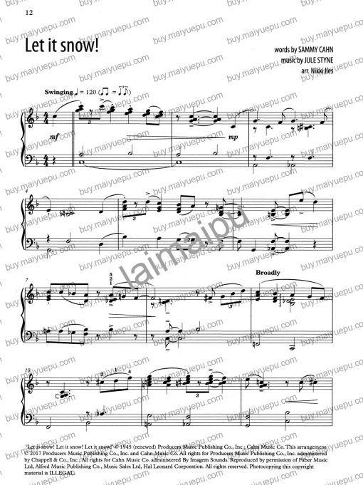 继Nikki Iles广受赞誉的爵士乐系列第一卷的成功之后,这套丛书将为圣诞经典曲目提供精致的新爵士乐编曲,包括 “Let it snow!”、”Rudolph, the red-nosed reindeer”、”Away in a manger “和 “Past three o’clock”。从摇摆舞、跨步舞到boogaloo和卡利普索,各种风格都有体现,而由Nikki Iles录制的专业CD则有助于演绎。爵士冬夜2包含了完整的节奏、节奏和即兴演奏,是钢琴家们寻找真实声音的完美集合。