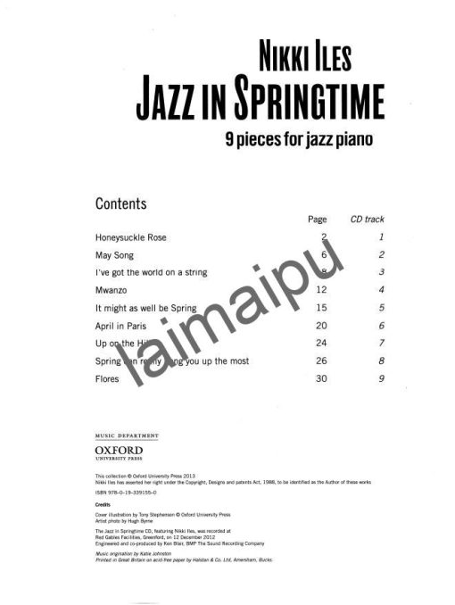 这张时尚的钢琴专辑将带领演奏者们进行一次春日的音乐之旅,在著名爵士钢琴家Nikki Iles酷炫的原创作品之外,还呈现了《April in Paris》和《Honeysuckle Rose》等广受喜爱的爵士乐标准曲目。九首曲子呈现出不同的爵士乐风格,包括摇摆乐、民谣、桑巴和现代乐,灵感来自Keith Jarrett、Oscar Peterson、Count Basie和Chick Corea等人。春天的爵士乐》是钢琴家们寻找正宗爵士乐声音的完美典范。