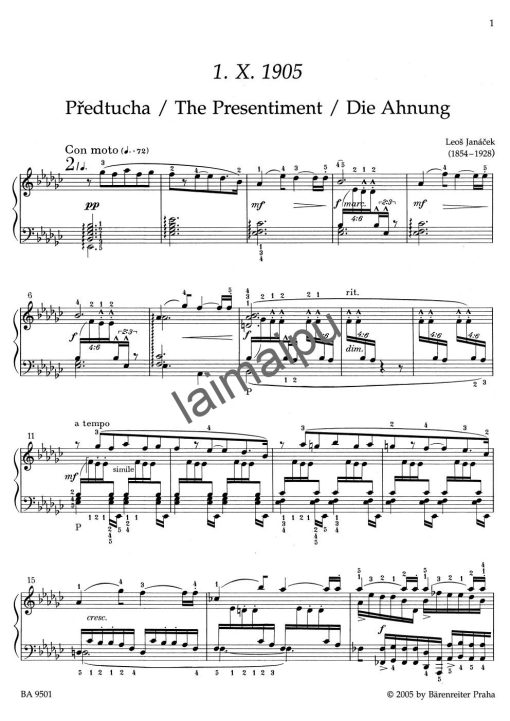 杨纳切克为记念一位于 1905 年在社会运动中死亡的 František Pavlík (1885–1905),写下了这个作品 (原曲另有标题为 ‘from the street’),本来有三乐章,后来作曲家烧掉第三乐章,以两乐章的形式出版。两乐章分别名为 ‘预兆’ 与 ‘死亡’,厚重的和声织度,充份的反应了作品创作的背景与杨纳切克的个人风格。