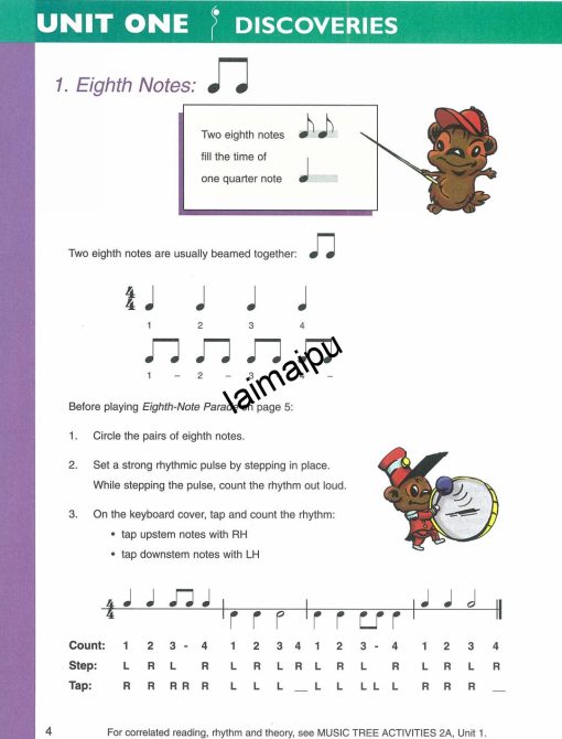 关于音乐树: 音乐树系列继续发展完整的音乐能力,为初学者提供令人愉快和多样化的曲目。学生将学习到包括民谣、爵士乐和流行音乐在内的各种曲风。学生的创造力得到了强调,因为他们得到了重新编排、转调、完整的音乐片段,或作为新的创作的基础。技术方面的问题也得到了解决,包括更多的内容像音程与和弦,以及更多的手一起演奏。指导性的训练步骤被用来鼓励智能的练习技巧。