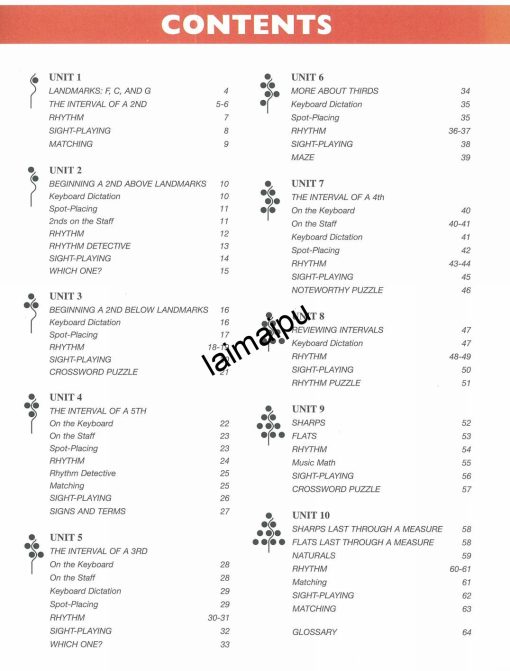 音乐树系列继续发展完整的音乐能力,为初学者提供令人愉快和多样化的曲目。学生将学习到包括民谣、爵士乐和流行音乐在内的各种曲风。学生的创造力得到了强调,因为他们得到了重新编排、转调、完整的音乐片段,或作为新的创作的基础。技术方面的问题也得到了解决,包括更多的内容像音程与和弦,以及更多的手一起演奏。指导性的训练步骤被用来鼓励智能的练习技巧。