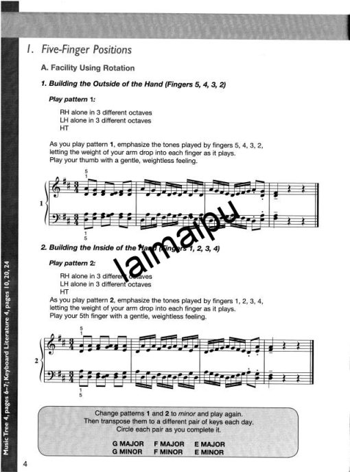 关于音乐树: 音乐树系列继续发展完整的音乐能力,为初学者提供令人愉快和多样化的曲目。学生将学习到包括民谣、爵士乐和流行音乐在内的各种曲风。学生的创造力得到了强调,因为他们得到了重新编排、转调、完整的音乐片段,或作为新的创作的基础。技术方面的问题也得到了解决,包括更多的内容像音程与和弦,以及更多的手一起演奏。指导性的训练步骤被用来鼓励智能的练习技巧。