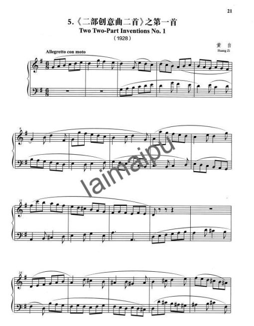 - 黄自: 《二部创意曲二首》之第一首 (1928)