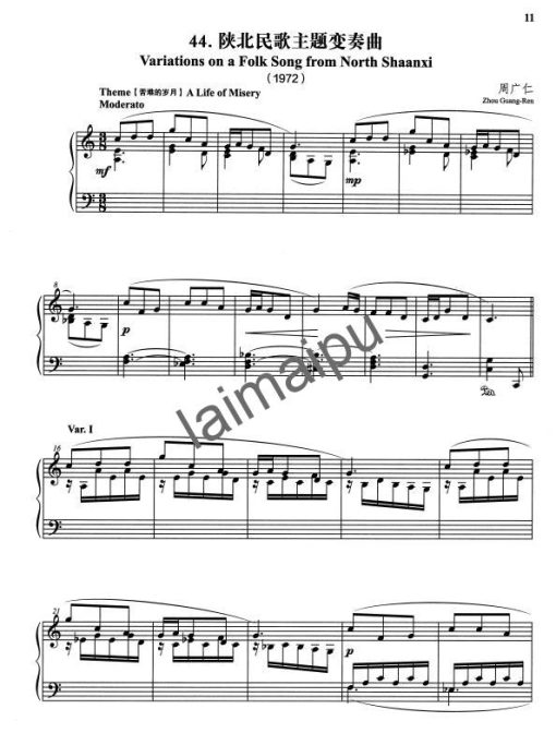 - 周广仁: 陕北民歌主题变奏曲 (1972)