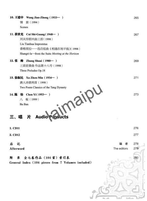 作曲家、作者、编者、译者 | 丁善德, 但昭义, 崔世光, 张帅, 张朝, 徐振民, 朱践耳, 权吉浩, 王建中, 盛宗亮, 赵晓生, 邹向平, 陈怡, 黄安伦 |