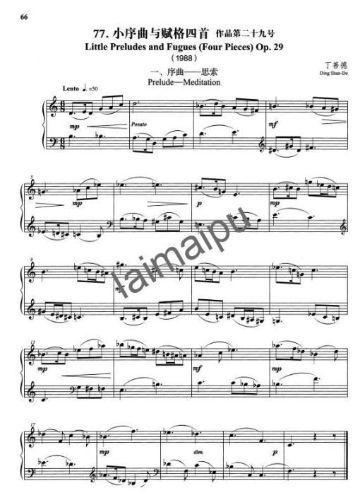 - 丁善德: 小序曲与赋格四首,作品 29 (1988)