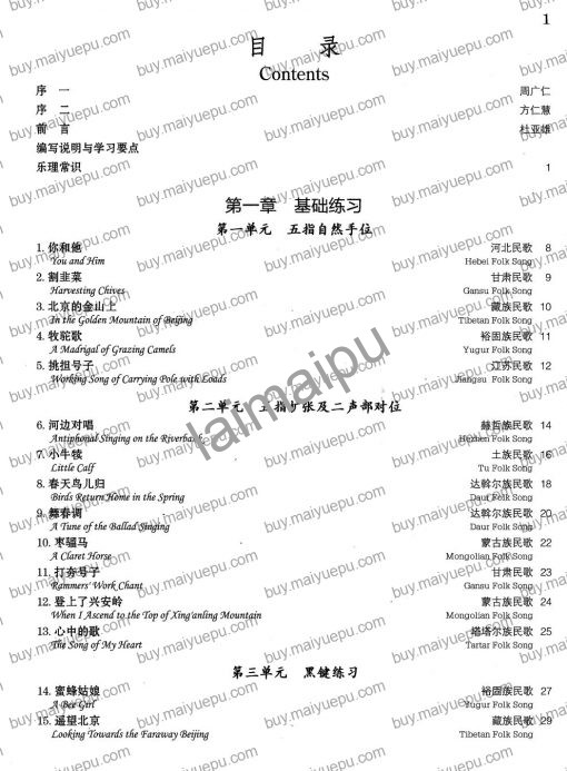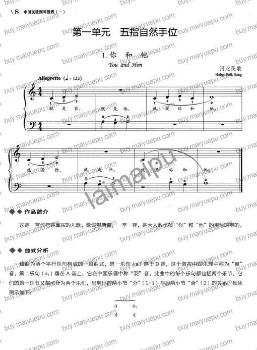 第一单元 右手弹奏单音旋律(左手弹奏和声音程或柱式和弦
