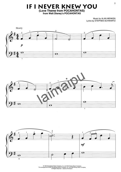 - If I Never Knew You (Love Theme from POCAHONTAS)